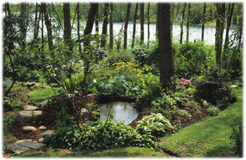 Haven: Vi flyttede hertil i 1972. Det var beliggenheden tæt ved Buresø, der var specielt tiltrækkende. Tænk at kunne gå ud af sin havelåge og hoppe i vandet eller at trave en tur i forårsskoven. Grunden er 2500 kvadratmeter stor - ca. 100 meter lang og 25 meter bred. Terrænet falder 8 meter fra huset til skellet ved søen. Dette giver fine muligheder for at dyrke mange slags planter, da drænet altid er i orden. |