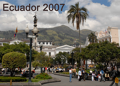 Equador 2007 En privat rejse med dansk guide. Det blev en oplevelsesrig tur, hvor fastlandsdelen blev gennemkørt. Et smukt land med et bølget landskab, men også med højere toppe og flade strækninger med floder og tropeskov. Flodsejlads til dyrehospital, og kystsejlads med fuglekik hørte med til højdepunkterne. Også byerne med deres farverige og venlige befolkning huskes ligesom mødet med skovens indianere, der indvilligede os i deres sæder og skikke. |