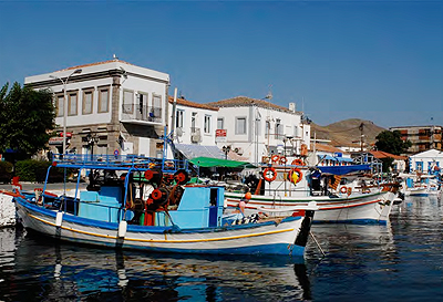 Limnos 2007 En kort sommertur ned i varmen. Hvad er da bedre end en græsk ø. Valget blev Limnos med al den græske stemning, man kan ønske sig. Her var virkelig varmt i juli. Landskabet var gyldent og strågult, og havet så blåt så blåt. I lejet bil kørtes øen rundt, hvor stop var indlagt med henblik på at trave omkring i området. Tilbage i de smalle gaders skygge kunne man nyde en kold øl på de små spisesteder. |