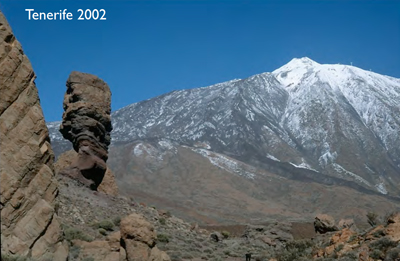 Tenerife 2002 Tenerife er en meget spændende ø. Naturen er smuk og afvekslende, og på traveture ude i landet har man det hele for sig selv. Vulkanen Teide knejser med sin hvide top og er helt sikkert turens største landskabelige seværdighed. Subtropisk plantevækst heriblandt mange sukkulenter med tykke blade var det altid interessant at gå på jagt efter. |