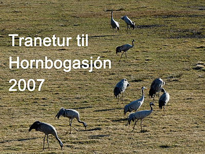 Tranetur til Hornbogasjón i Sverige 2007 Det sker i april, at tranerne samles på spisepladsen ved søen. Campingvogne holder på stribe med udsigt til engen, hvor tranerne går. Her er i hundredevis. De spiser og danser, og det er et prægtig skue. Egnen omkring stedet er også et besøg værd. Åbne strækninger mod søen med mange fuglearter giver anledning til at stoppe op, ligesom gravhøje og dysser gør stedet spændende i historisk perspektiv. |